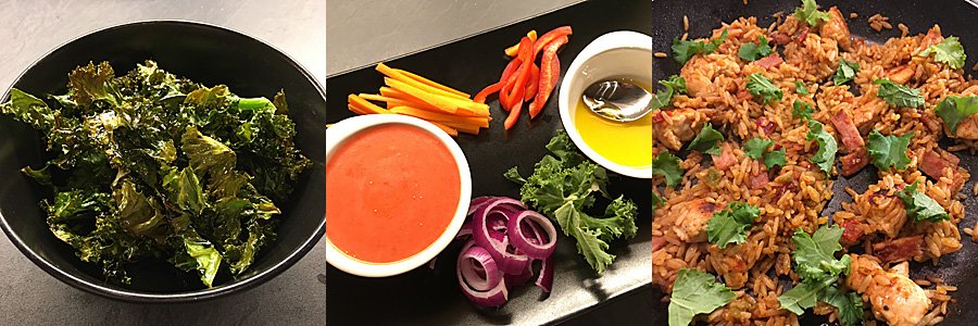 The book is split into two sections. The first (and shortest) section tells us Misha and Vicki’s story in their own words. They talk about making food fun, involving their kids in the kitchen, and allowing themselves, their kids, and their house to get messy in the pursuit of better diets for all. The pages are filled with photos of the Collins family being silly with salad—Misha is the force who gave us GISHWHES after all, so expect some truly bonkers things in these pages—but there is some truly great advice here too, with notes from psychologists backing it all up. This first section also includes a guide to the best items to keep in your store cupboard and kitchen implements to have on hand, and it’s refreshing to see one of these that isn’t filled with expensive and difficult to find items that will rarely be used in an average kitchen.