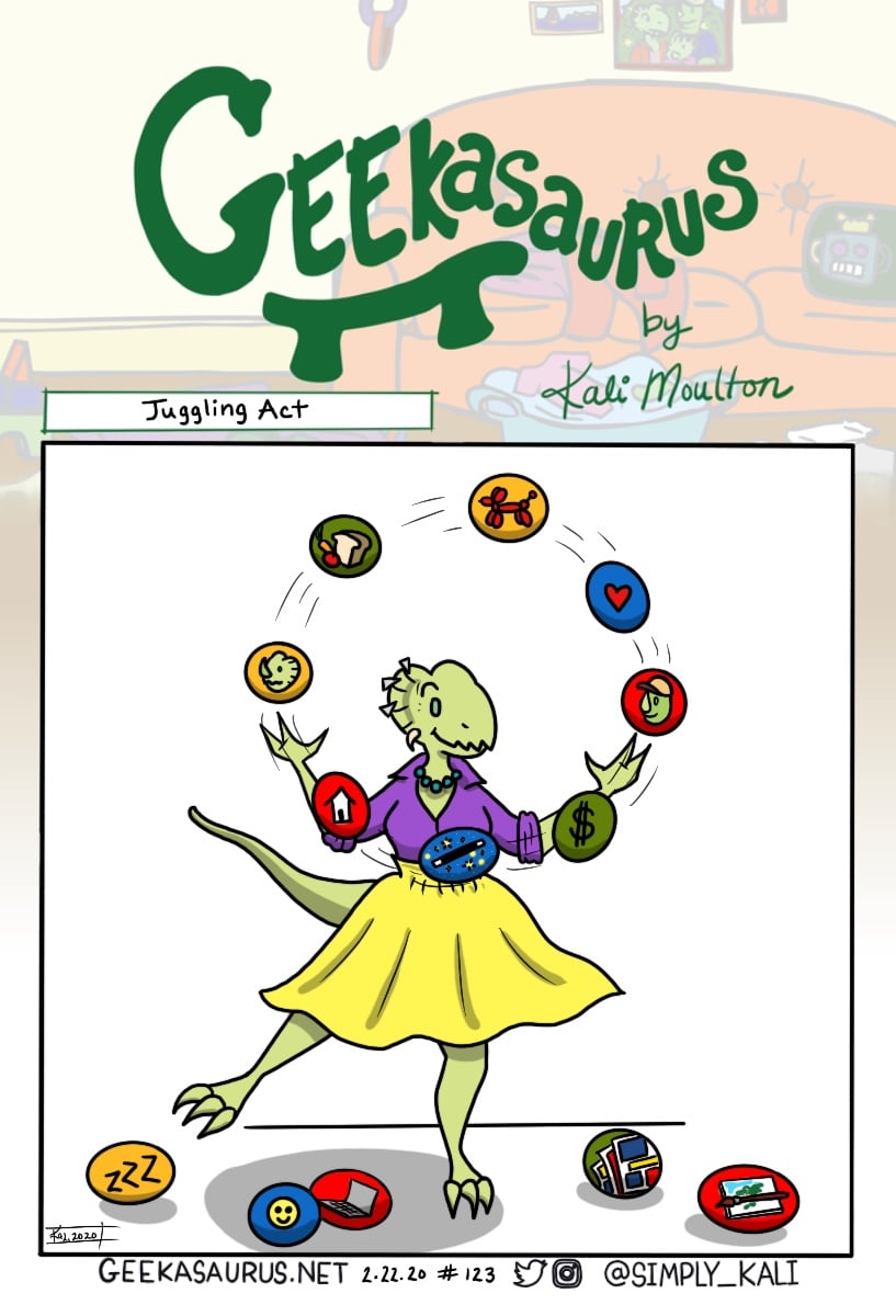 If I could juggle this well, I’d take my show on the road. But like all working parents, I feel like I’m dropping the ball on a regular basis. Especially now that Wayne and I are so focused on building our business. There are too many tasks and not enough time.
