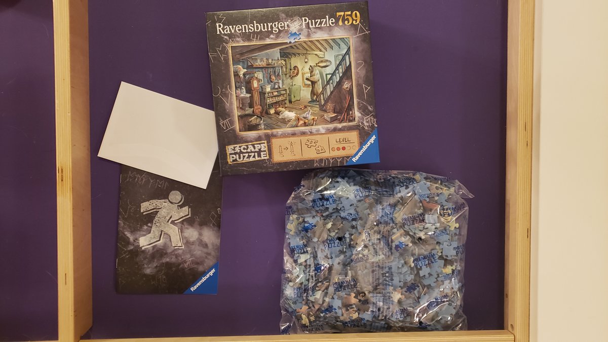 Finally, we worked our way up to one of the Escape Puzzles. These are a really cool concept. The puzzle is like an escape room in a box. GeekMom Jenny previously reviewed one from the 2019 release line. We decided to try the Forbidden Basement puzzle first. The box comes with the puzzle pieces, a booklet, and a sealed envelope. The booklet sets the mood with a scenario. In this case a distant wealthy relative has died and you are summoned to their estate to prove your worth to try and gain the inheritance.