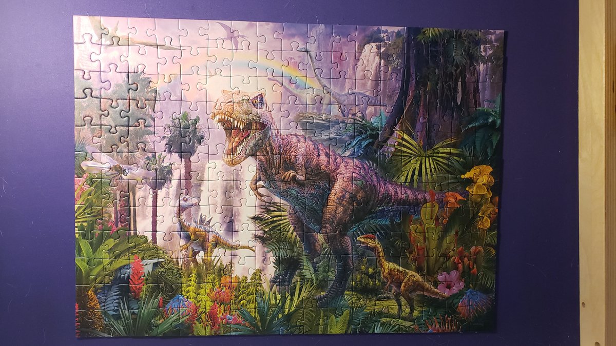 Even out here in the Southwestern US, we’ve had some spurts of nasty cold and rainy weather which has lead to a lot more “indoor activity” days for the kids. Like a lot of families, we try to keep some limits on how much screen time we let our kids have which can lead to a scramble for new stuff for the kids to do while stuck inside. Luckily, I got offered a chance to review some of the new 2020 puzzle releases from Ravensburger. I’m a big fan of puzzles. They’re clearly an activity that promotes brain power, and I’ve always found something relaxing about putting them together. Puzzles are engaging without being high stress, and there’s always a logical solution. Ravensburger sent me four of their new newest releases: Dinosaur Land (200 pieces), Mystical Dragons (500 pieces), and two of their “Escape Puzzle” titles, Forbidden Basement and The Curse of the Wolves (759 pieces each).