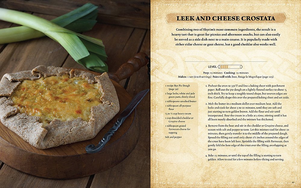 Naturally, finding the original Tamriel ingredients might be a bit tricky for us Earth-based adventurers so substitutions are always given. Sweet potatoes make a good replacement for ash yams, beef works as a stand-in for horker meat, and cranberries work well in lieu of snowberries. For extra help, every recipe also includes a difficulty level, prep and cooking times, the number of servings from the listed ingredient quantities, and even suggestions of what it pairs well with. There’s a great mix of basics through to complex main meals so you’ll be able to find something to try no matter your skill level in the kitchen.