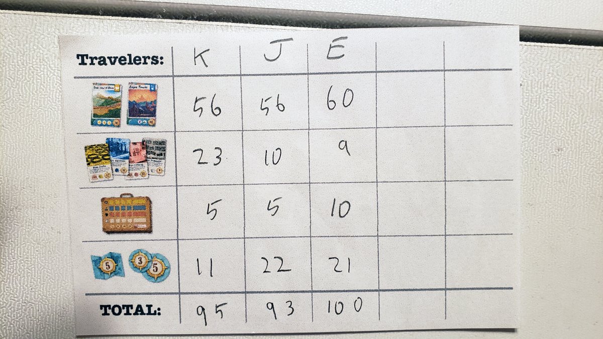 Gameplay has echoes of Ticket to Ride which helps it to catch on, but it is very much its own game as well. With each turn being made up of two basic steps, it’s not that hard to teach, especially to kids and casual gamers. The real challenge is in how you go about scoring points because plenty of different routes can take you to victory. Will you snatch up the Destination Cards with the highest bonuses? Aim to grab as many souvenirs and the bonuses as possible? Will you sweep in to grab those Region Bonus tokens? There’s a little bit of luck with relation to what Trek Cards you get and what Souvenir Cubes are available where to help even things out a bit between experienced and newer gamers, but there is enough strategy to keep things interesting. Our game had final scores close enough to each other that the victory wasn’t locked in until the final move. I think the recommended age of 10+ is pretty close. Our nine-year-old can play, but he’s a pretty decent gamer at this point and has been eagerly playing the full version of Ticket to Ride for awhile. If you have a slightly younger kid who can play Ticket to Ride or can play other games in that 10+ range, they should be good for this one too.