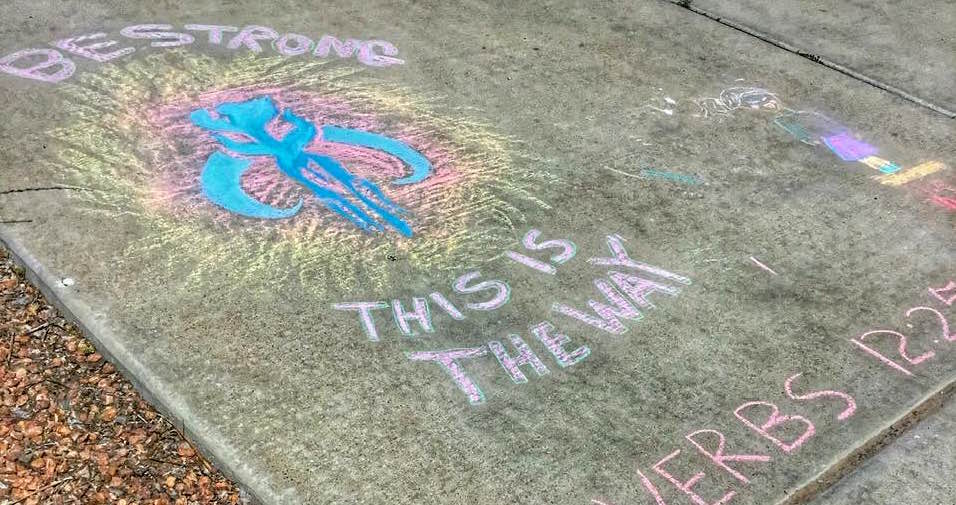 ChalkYourWalk. This was one the entire community could take part in from their own homes. On March 20 and 21, our local Parks and Recreation Department encouraged people to draw or write encouraging messages and artwork on their sidewalks or driveways. Those who were able to get out and walk around the neighborhood (while practicing all the CDC social distancing and safety guidelines, of course) could see what others had created. People could also post their works online with the hashtag #chalkyourwalkEP2020.