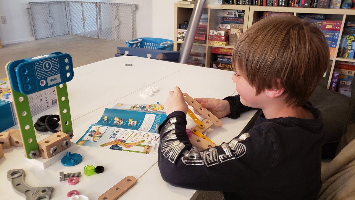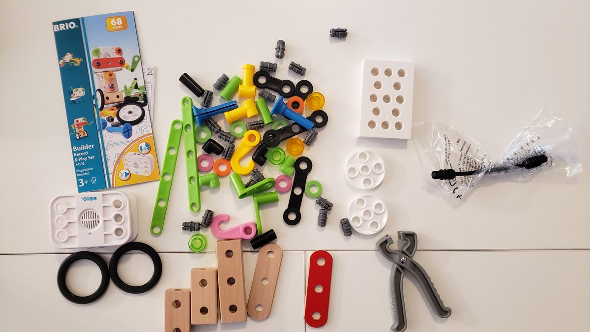 A, our nine-year-old, has been a LEGO fan for a long time, but in the past six months or so he’s really gotten into other STEM type building sets. We’re familiar with the BRIO brand because of their famous wooden train sets, but I hadn’t branched out into their other products. Then I got a chance to check out and review some of the newest editions to the BRIO Builder line, the BRIO Builder Motor Set (MSRP $59.99) and the BRIO Builder Record and Play Set (MSRP $39.99).