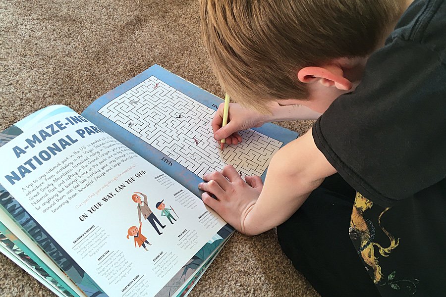 My biggest issue with the National Parks of the U.S.A. Activity Book is that the book is printed on a very strange paper than leaves an unpleasant, almost fuzzy sensation on your hands after touching it. I found myself wanting to wash my hands every time I held it, which, admittedly, was probably a good thing given that we have been working our way through the book during the COVID-19 lockdown! The book also doesn’t have as much packed into its pages as it could have done – it’s fairly sizable so more activities could easily have been included by scaling down those already inside – but the large text does make the book as it is very inclusive and ideal for readers with visual disabilities.
