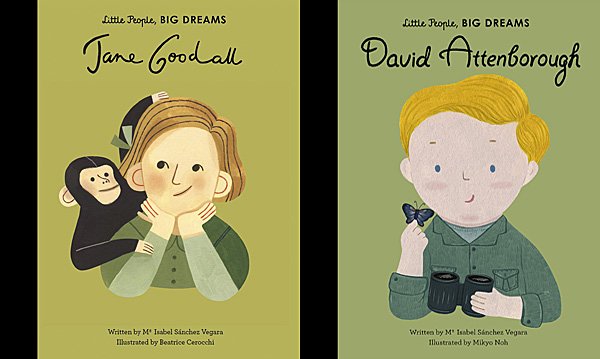 Little People, Big Dreams: David Attenborough and Jane Goodall by Mª Isabel Sánchez Vegara, Illustrated by Mikyo Noh and Beatrice Cerocchi