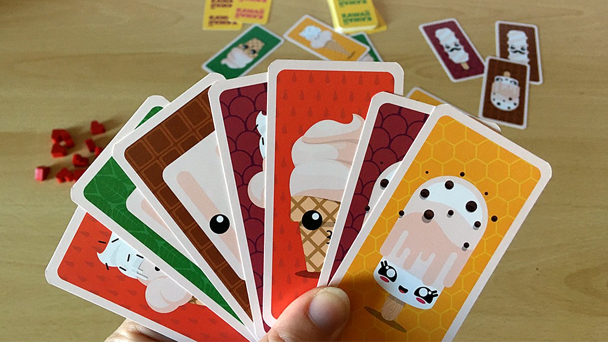 Kawaii is an adorable miniature card game from the makers of Bandido where you try to collect as many ice cream cards of your favorite shape and/or flavor as possible.