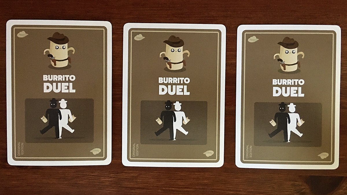 When a player collects three Duel Cards, they choose any two players (including themselves if they choose) to play a Duel. Those two players each take a foam burrito and stand back-to-back. They then simultaneously say “3, 2, 1, Burrito!” and take one step forward in a straight line with each number. As they say “Burrito!” they turn and throw at their opponent. The first to get hit loses the Brawl and is awarded a Burrito Bruise.
