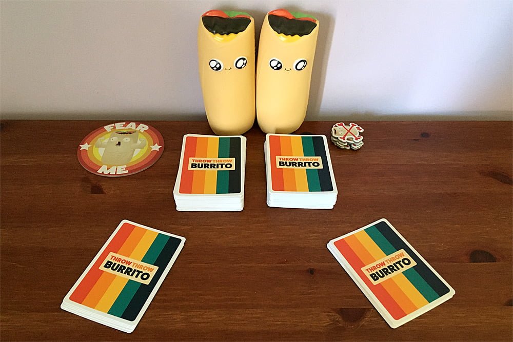Throw Throw Burrito is a silly, high-energy party game created by Exploding Kittens that describes itself as a “Dodgeball Card Game”. Players collect sets of cards to earn points and allow them to throw cute foam burritos at their opponents. It gets even more vicious and competitive than you’re currently imagining it would.