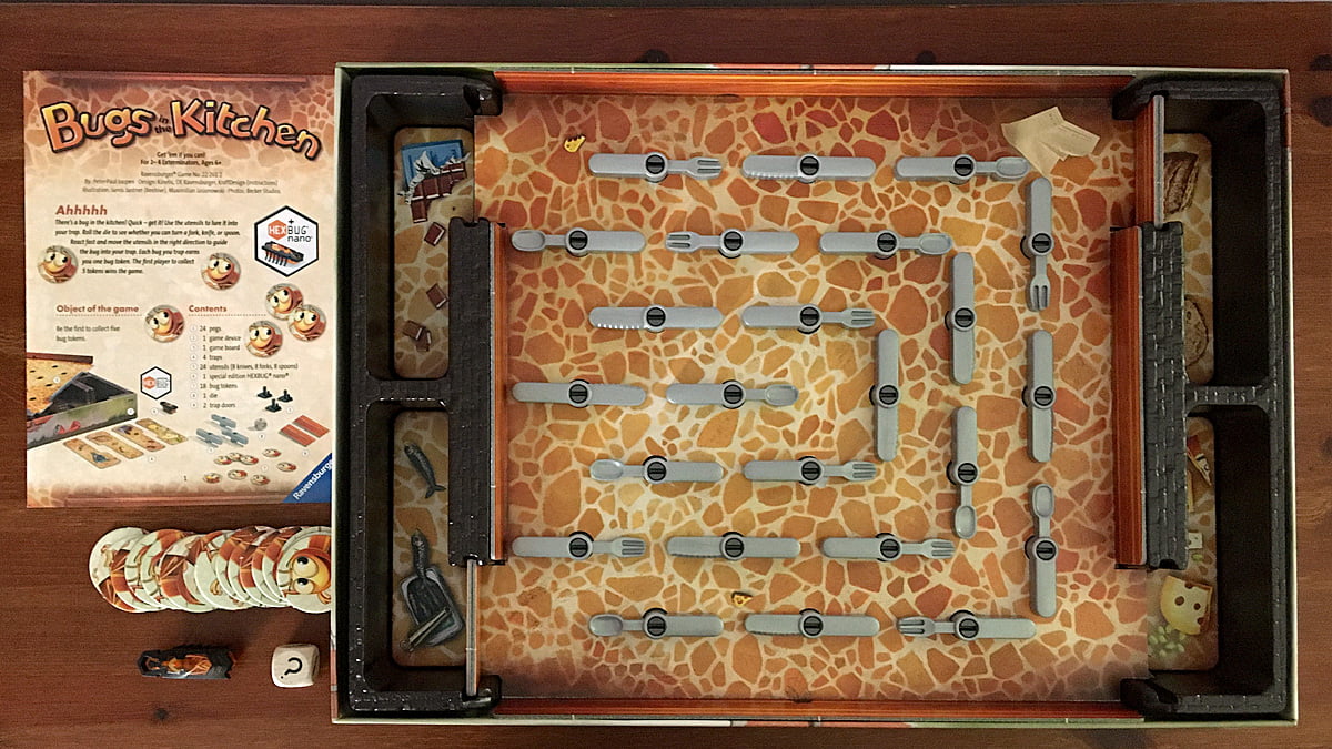 While the box is quite large, the fact that the box IS the board largely makes up for this and means that Bugs in the Kitchen is actually far more environmentally friendly than other family games of its size.