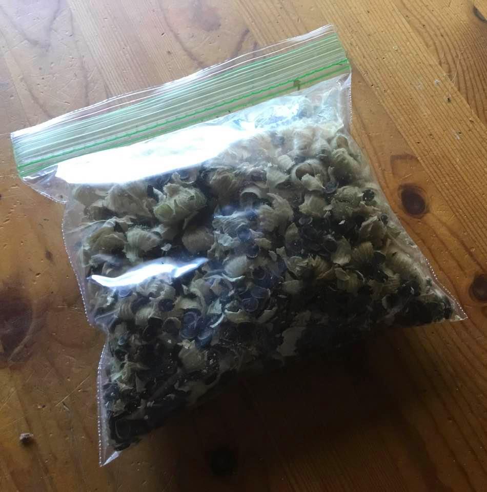 This trend of flower sharing continued through this year’s “Zoom Meeting” world during the start of the pandemic, as one of my husband’s coworkers noticed the flowers in the background during a video meeting. We now have one full bag of future hollyhocks ready to take to her once everyone can get back to their lives.