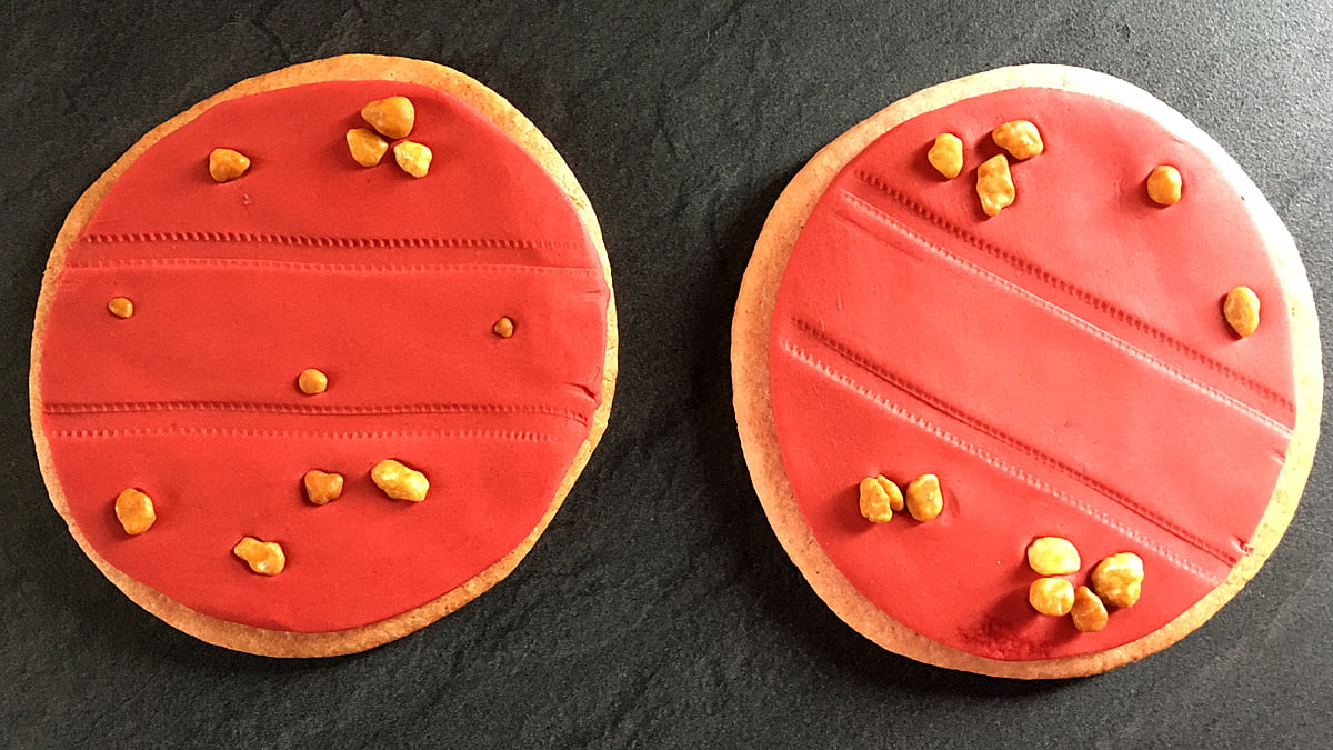 Option three was by far the tastiest. Mix cinnamon and ground ginger to form some rust-colored dust, then use a food-safe paintbrush to brush it across your fondant to replicate the Martian dust that covers the planet’s surface. You could also combine this with option two but if you do, roll your vehicle across after adding the dust so you don’t cover up your tracks like a kitchen-based Martian dust devil!