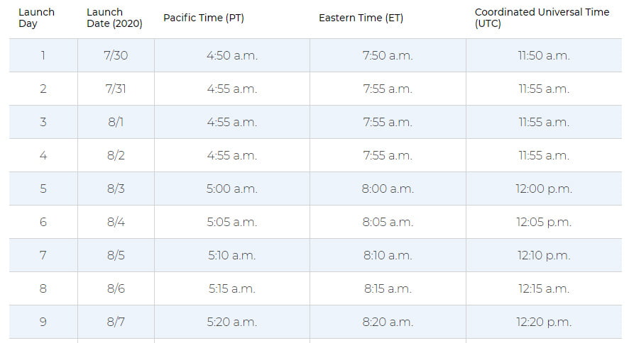 Prior to the launch itself, there will be a number of other live streams available to watch. A schedule of these is available on the Mars 2020 website and this also includes links to archived recordings of previous streams from earlier in the year.