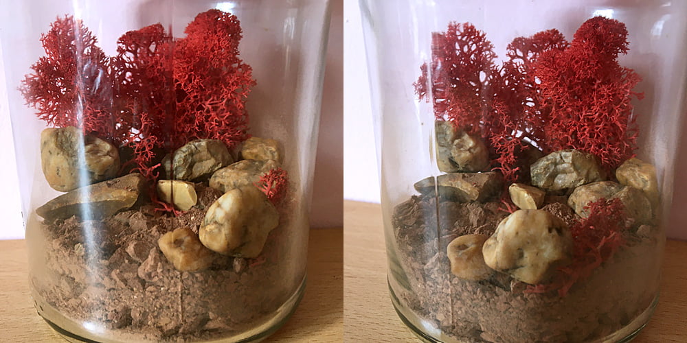 If you want your Mars Jar to look totally realistic, you can stop here, but I wanted something with more of a science-fiction feel so I chose to add a few more items to my jar. First was the only item I spent money on for this project – a few small cuttings of bright red dried Reindeer Moss. I picked mine up on eBay for around $3 (including shipping) for 25 grams which would be enough to make dozens of Mars Jars should you want to do this as a project with a larger number of people. The moss has an odd, almost sponge-like texture which reminded me strongly of the red weed from H.G. Wells’ The War of the Worlds and it added not only a more bold color to my landscape but also an otherworldly feel. Should you want to add more color to your Mars Jar, the moss can be purchased in a rainbow of bold, bright shades including blue, purple, green, and hot pink!