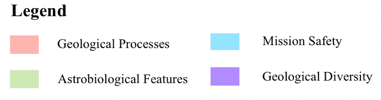 Midway (below) could be reached from either of the other two sites, which made it an interesting secondary possibility. It holds some interesting possibilities for potential subsurface life, but the origins of some of the rocks were deemed too uncertain to make it the primary site.