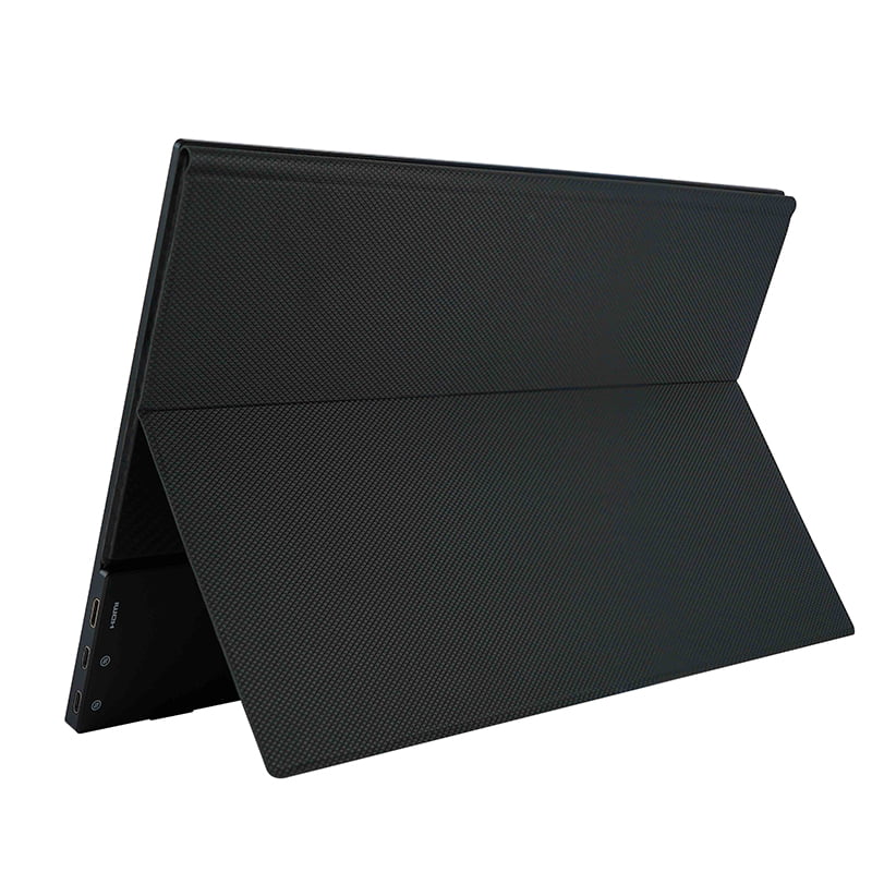 Before even plugging it in, the first thing I noticed about the Vissles-M monitor was the unusual cover/stand. It’s completely removable and held on by sufficiently strong, strategically placed magnets, but it’s a bit flimsier than I would wish for. And it wasn’t immediately clear how to use it as a stand; it took some experimentation. The stand is a bit awkward to adjust and doesn’t lock into any position. It does the job, but I wish instead that there was a built-in kickstand, as with the Surface Pro, and then also a separate cover or sleeve. In any case, here’s a helpful GIF to demonstrate how the cover/stand works.