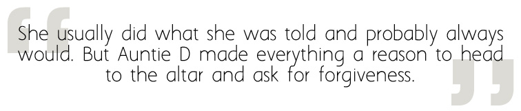 Rasheeda lives with her ultra-religious aunt who believes she can keep her niece out of trouble by keeping her in church as much as possible over the summer. Between her dozens of ministries, Rasheeda barely has time to crash on the couch and watch her favorite TV show, but now that she is approaching 14 and ready to begin high school, Rasheeda is starting to develop new interests, specifically in her best friend Monique’s older brother Lennie. Knowing that no matter what she does, she will find herself having scripture quoted at her, Rasheeda gradually starts to break the rules as she wonders who she wants to be.
