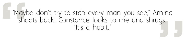 The biggest downside to the book was that it gets a little heavy-handed at times. The entire story is a vehement rally against the patriarchy and how it allows men, particularly rich men, to keep and sustain power over women. Anyone who does not conform faces being branded a traitor. LGBTQ individuals are forced to hide their true identities while women are kept under curfew and prevented from possessing money or property. The main protagonists go on frequent rants about this system and, while I agreed with every word they said, many of those moments felt forced, the author using them to tell us about our own society’s failings rather than letting readers figure out those parallels for themselves.