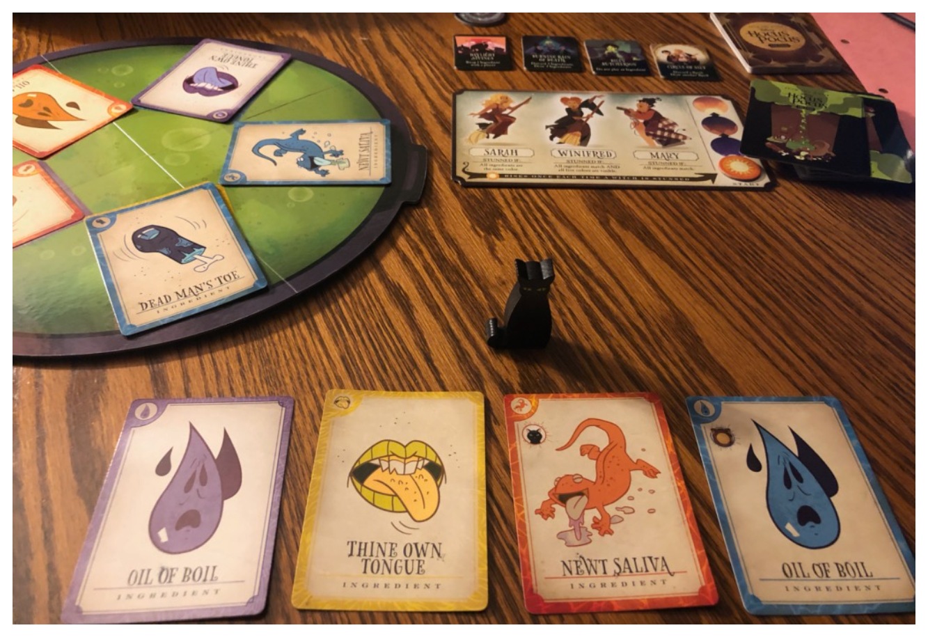 Note – do not make the mistake I made the first time I played. I spent most of our cards very early on trying to get one of each type. This is not a way to stun a witch, but it’s a great way to lose the game very quickly.