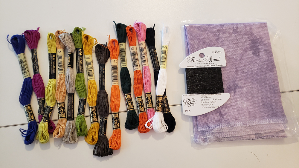 The kit including the special colored fabric for the project, all the threads and access to a digital copy of the pattern. The pattern is part of what the company calls an SAL (Stitch Along). This SAL is intended to last through 2020, so each month all subscribers get an updated pattern in their inboxes with the next section added on. I may have been starting part way through, but it didn’t matter. I could catch up as my stitching time allowed and still finish the project with everyone else who began it back in January if I liked. It felt like a really cool subscription box, only you don’t miss out on the cool stuff past boxes if you join late! Once the SAL is complete, both physical and digital copies of the pattern become available to buy (you may have to get the fabric and floss on your own if the site is sold out) so anyone who finds out about it after the fact can still get in on it.
