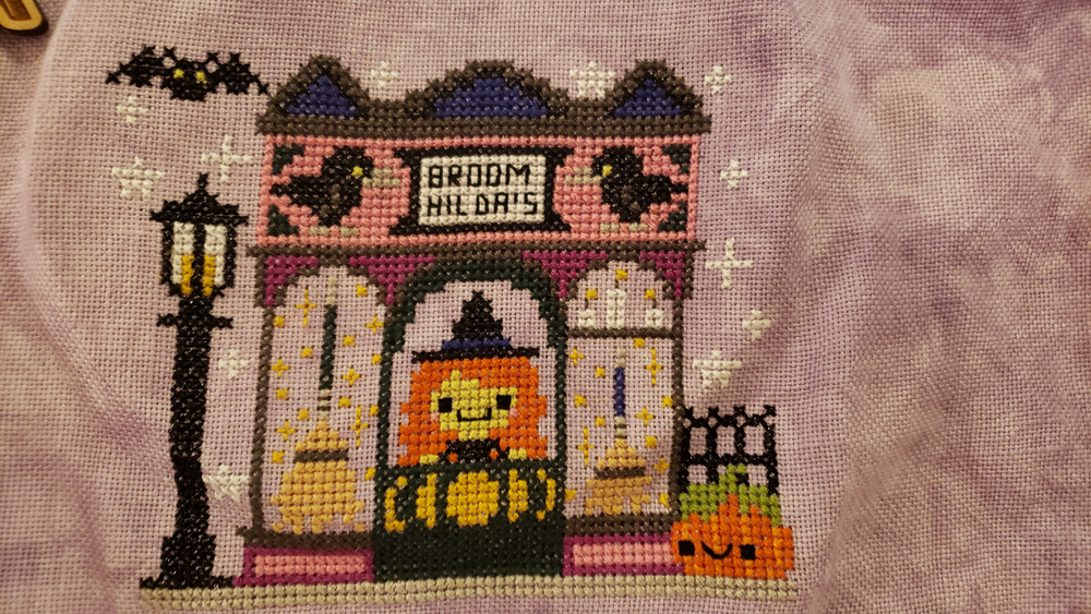 I broke into the kit right away because I was super excited and got to stitching. I realized pretty quickly in that the whole thing was pretty soothing for my anxiety. The patterns have a decent balance of detail without being too tricky, so they’re pretty friendly for beginners. It’s an activity that requires just enough of my attention span to distract me from more active anxious thoughts, but it’s not so intense that if I’m having a anxiety patch that it’s too overwhelming for me to approach as an activity. The happy little pictures that start to appear bring me joy and the excitement of seeing the next pattern section has been good for my COVID morale too. A few days after my birthday, a shorter Halloween-based SAL called Midnight Way released with four sections that came out in two week periods. I snatched it up while full kits were available. I was able to work on that one as it released and bounce back to Animal Almanac as I waited for new sections to release. With my Animal Almanac subscription giving me a year-round discount code of 15 percent off my purchases, I have definitely picked up a few more kits along the way too. I won’t be running out of projects anytime soon.