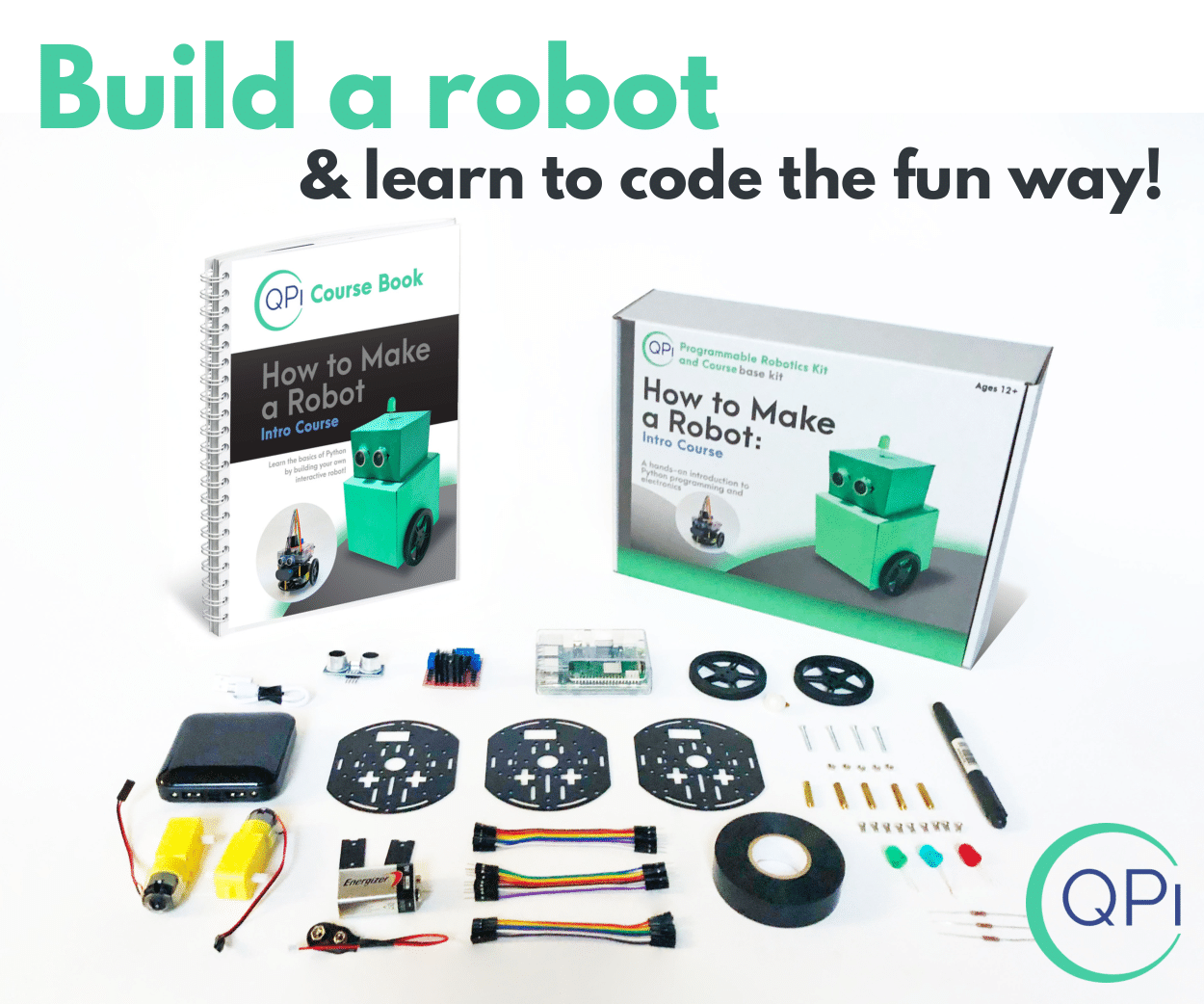 Learners receive in their QPi Kits the How to Make a Robot: Introductory Course in Python Programming & Electronics guidebook along with all the physical components needed to create and program Boxie, a DIY robot tailor-made for beginning coders. They’re also given access to a library of step-by-step instructional videos with live help from tech experts—each aspect rooted in pedagogical research and national curriculum standards to specifically benefit our often overlooked kinesthetic learners.