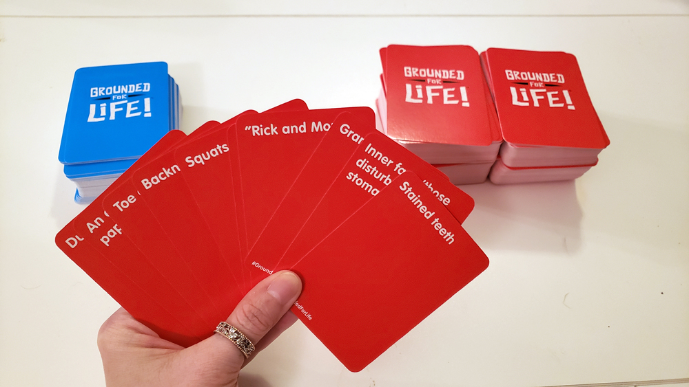 Grounded for Life is a card judging game similar to Apples to Apples or Cards Against Humanity that was created by the makers of What Do You Meme? It’s intended for 3 to 20+ players ages 8+ and takes about 30-90 minutes to play. It has a MSRP of $19.99.