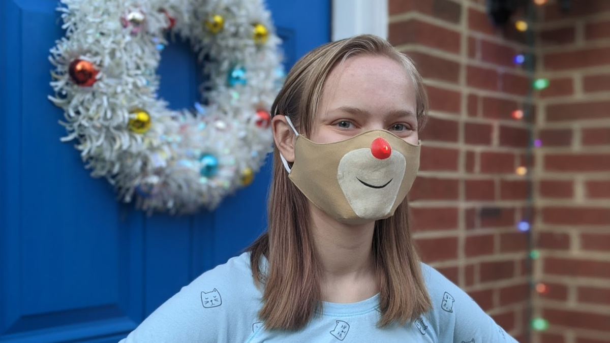 Finish sewing your mask like usual and enjoy your day as Rudolph!
