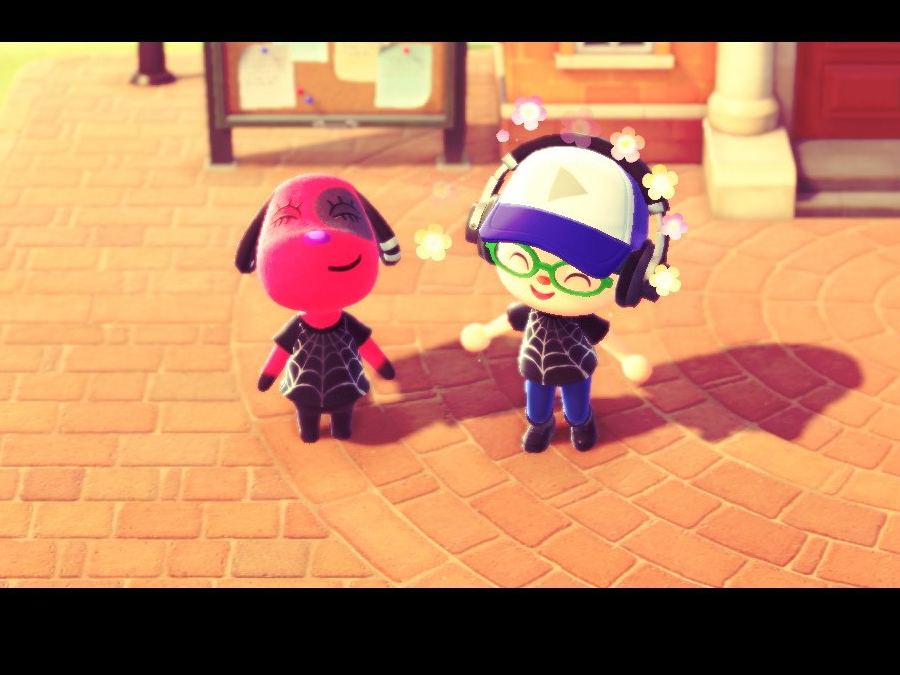 I really love taking pictures with my residents. I even made sure to match my favorite resident, Cherry, on Halloween. If you have a collection of costumes and fun outfits, you can leave them in one area so that the kids can pick them up, wear them (or keep them!), and take pictures around your island.