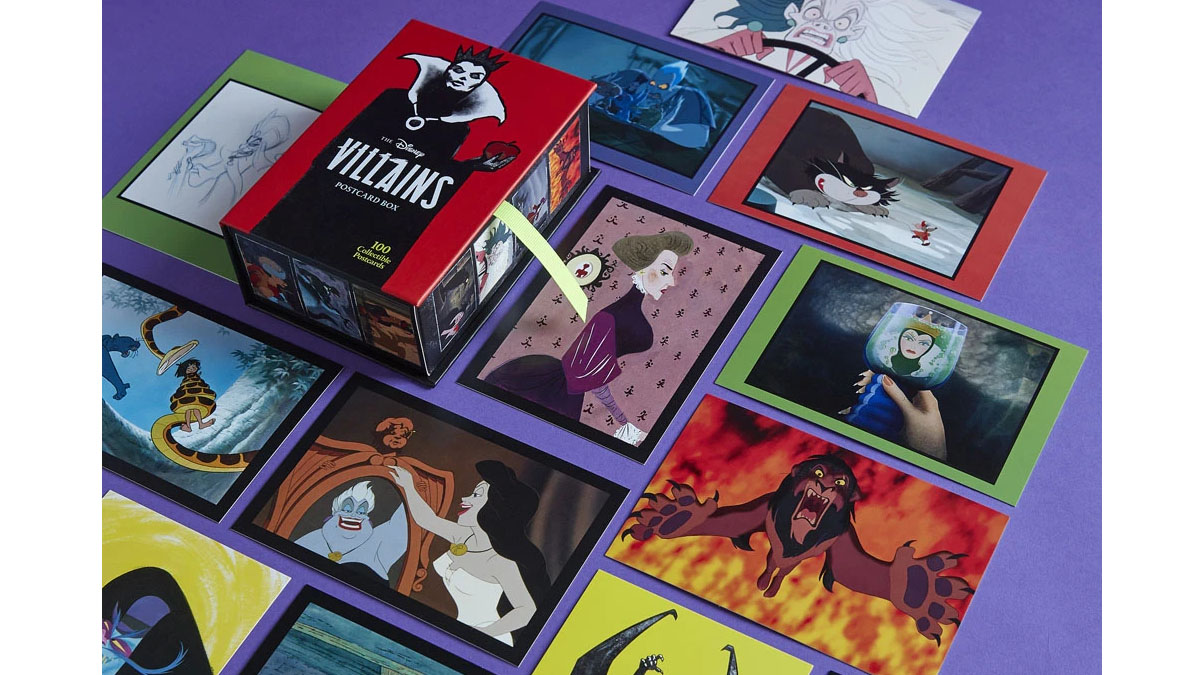The Disney Villains Postcard Box is a collection of 100 unique postcards featuring dozens of villains from 29 different Disney animated titles. At $22.95 ($20.67 on Amazon), this is an affordable way to add a huge range of art to your collection or to start (or continue) your postcard sending hobby. The only warning I’d give is that if you (or the person you’d like to send the cards to) haven’t seen the titles listed above, you might get some spoilers as to who the villain actually is.