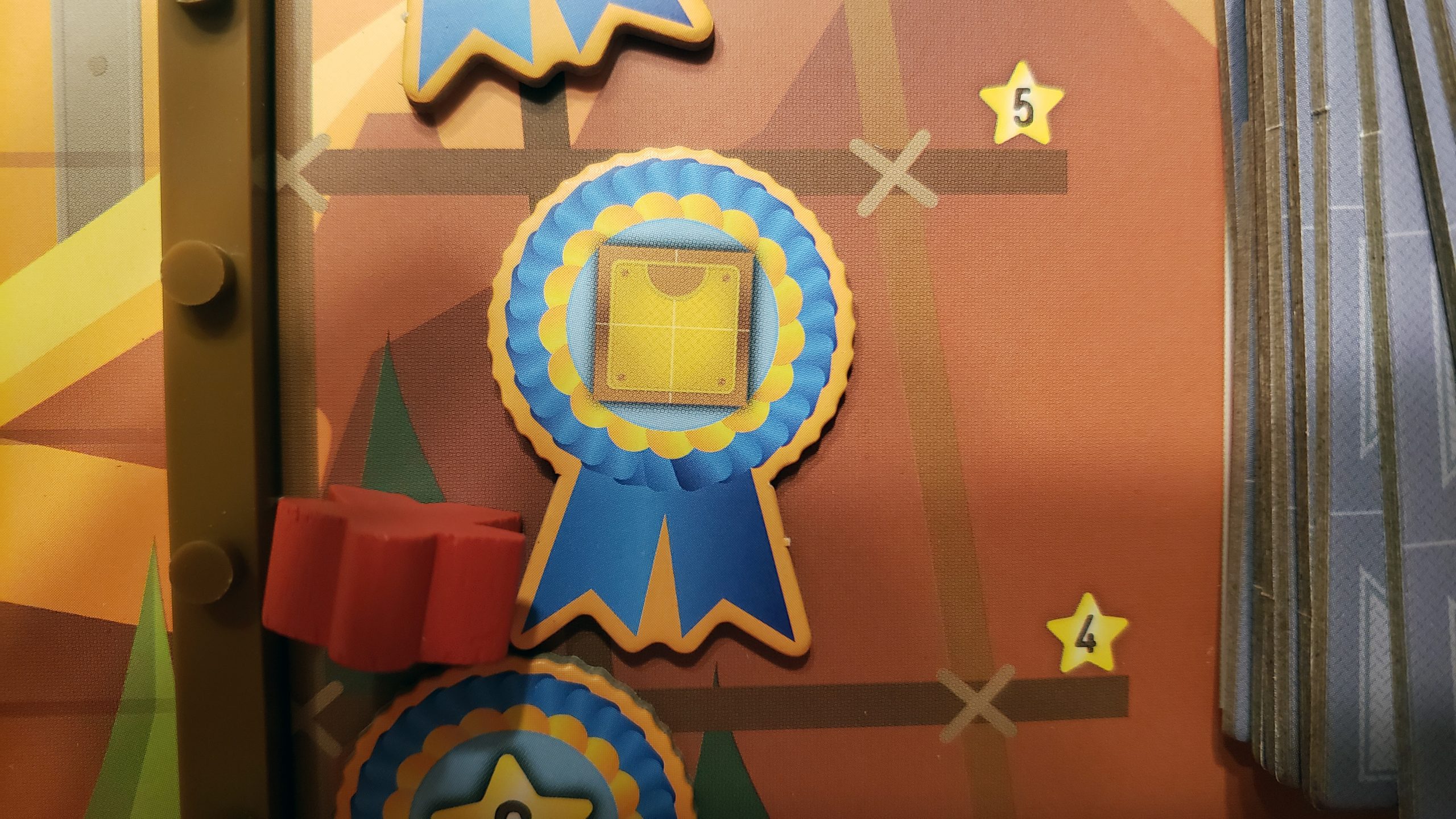 - Starting with the first player and moving left, each player picks 2 Scaffolds. One is placed by the Player’s Board in storage, the other is placed on the board with at least one edge aligned to the grid bottom.