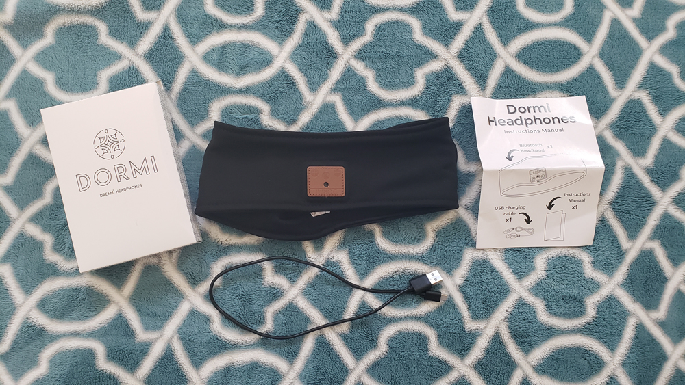 The Dormi arrived in under a week for me. (Admittedly, this was before the winter conditions started creating postal issues.) It came with a Dormi Dream Headband, an instruction book, and a short USB charging cable.