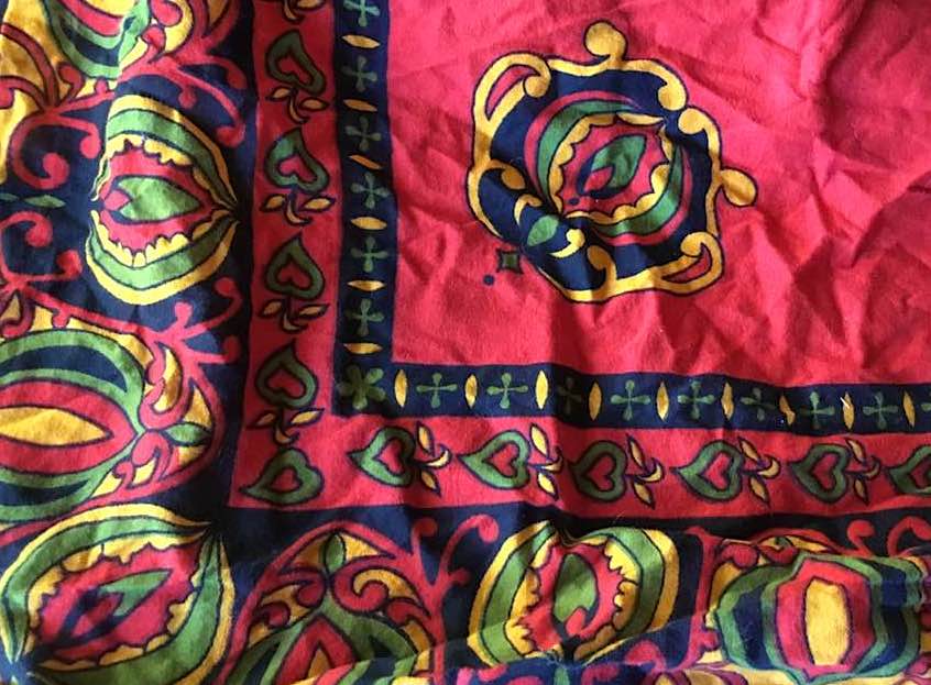 Some little relics helping to appease my inner armchair traveler have been a collection of “textile” pieces such as scarves, wraps, and handkerchiefs. My family collected these over the years from their own travels or as gifts from friends from other countries.