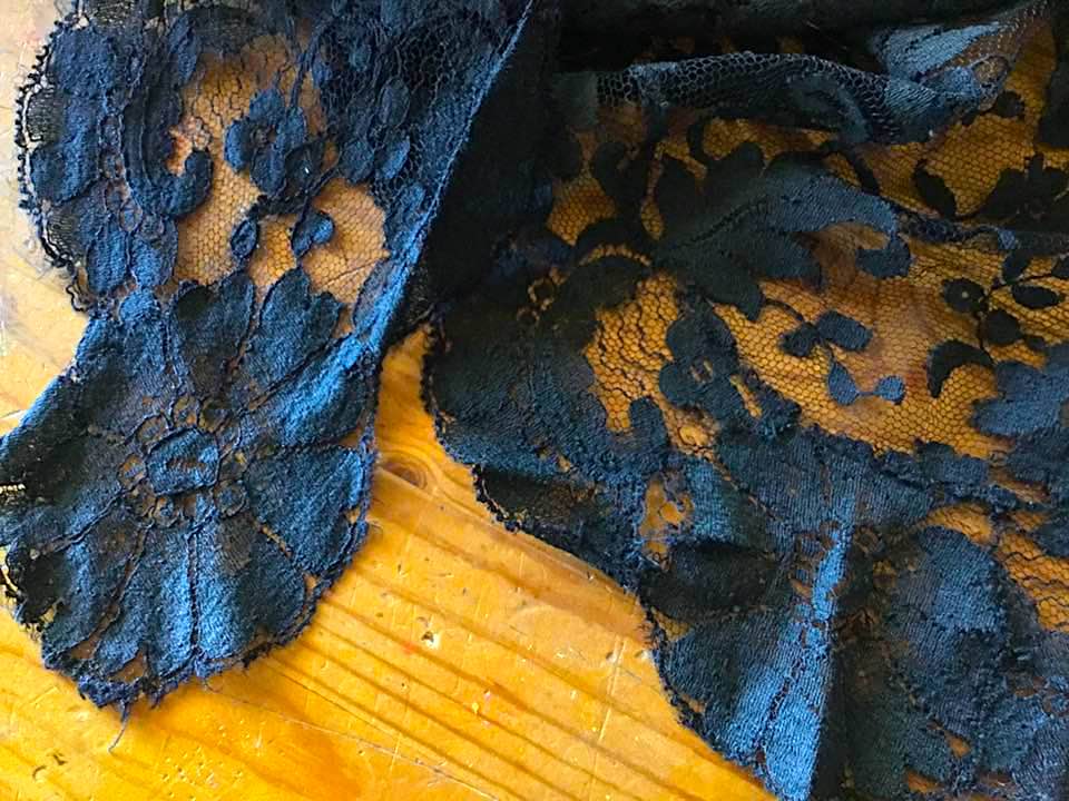 I have a small version of a traditional black lace mantilla my uncle brought my mom from Spain when he was in the Navy. Some of these can be huge and flowing, but mine is a little smaller, probably one meant for tourists. I was always fascinated by these traditional veils when I was a kid and loved the dark, lace flowers of the ones my mom had and used for everything from doll clothes to wrist bands, I don’t know if my uncle ever picked up a comb, or peineta, that is often worn under them, but the mantilla on its own is gorgeous.