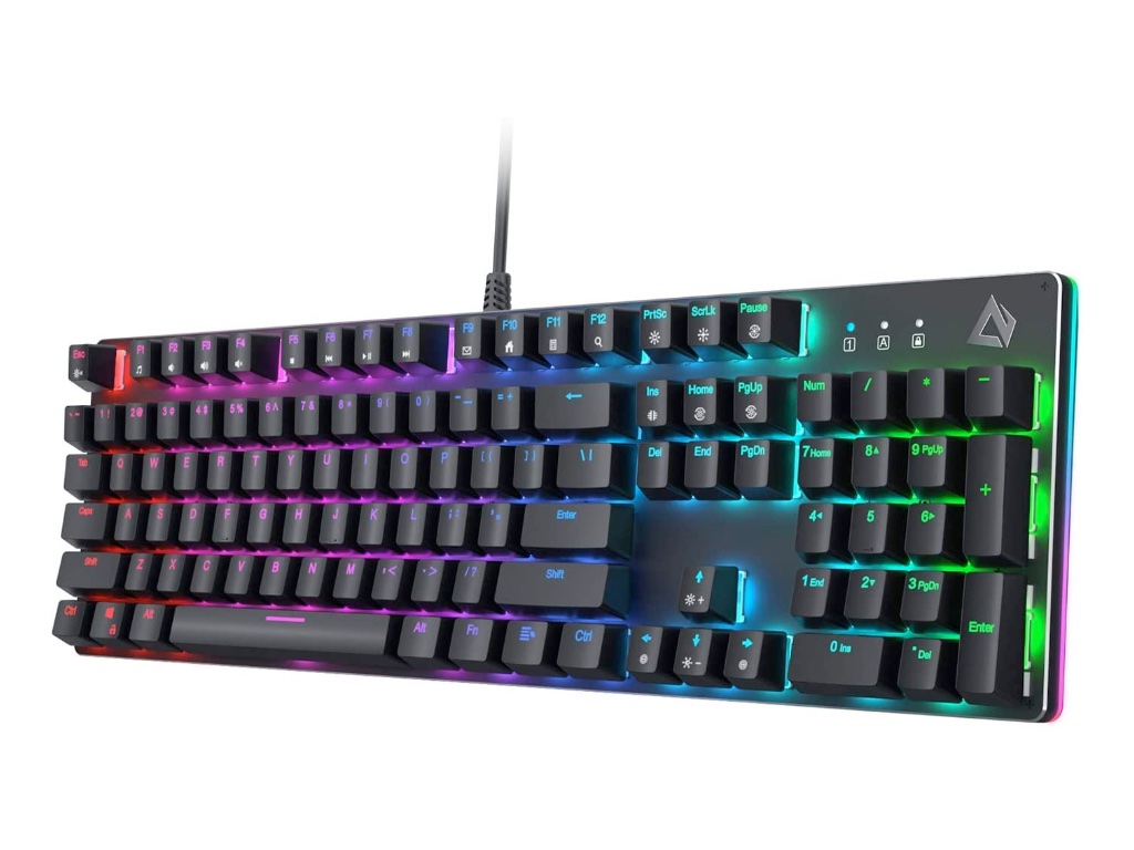 AUKEY Mechanical Gaming Keyboard with Customizable RGB Backlight, Tactile & Clicky Blue Switches, 104-Key Anti-Ghosting Wired Keyboard with Surround Lighting, Steel Body for PC and Laptop – $38 when you use secret code GFP66GNY: