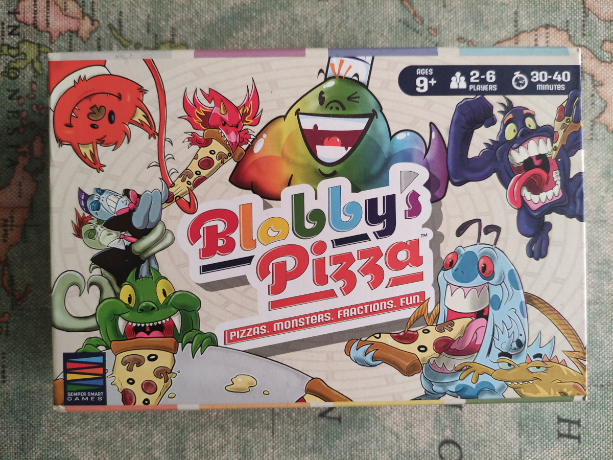 Pizza night. There are few better ways to spend an evening with family. Now you can recreate the experience whilst learning some fractions when you play Blobby’s Pizza. What’s more, the game is filled with monsters. That’s right, pizzas and monsters; what’s not to love? Games of Blobby’s Pizza take about 30 minutes to play and are aimed at children aged 9+ (though it definitely can be played by younger children). The game supports 2-6 players, and just like pizza night, the more the merrier.