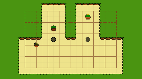 Room to Grow is a cute puzzle game in which you play as a cactus. In each level, you must manipulate your environment by growing yourself and pushing against walls and hedges to push another small cactus to the given target.