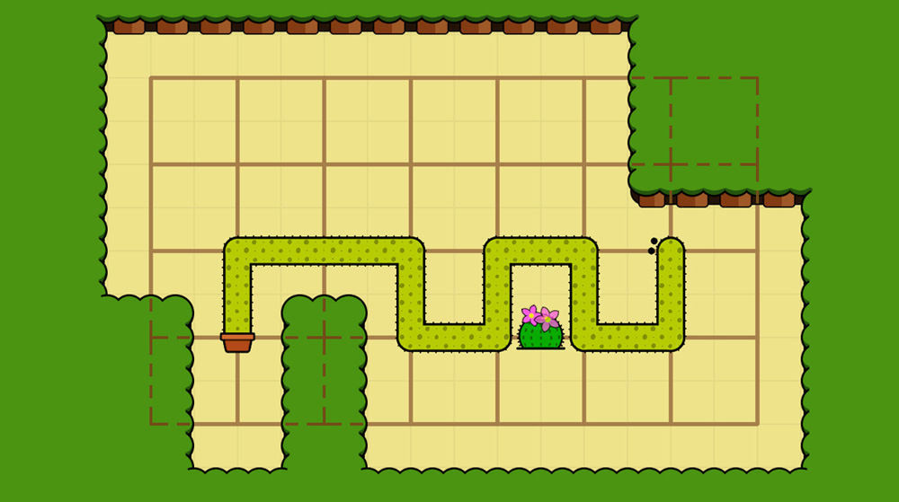 Finally, the artwork in this game is absolutely adorable. If you ask your cactus to move in a way it can’t, it will blush, and if you try to double back so it runs into itself it will squeak in surprise upon bumping its head on its own prickles. Yes, it’s all very simple—there are no hi-resolution photo-realistic graphics here—but that’s all you need in a game like this and I defy anyone not to burst from sheer cuteness the first time you spot your cactus blinking.