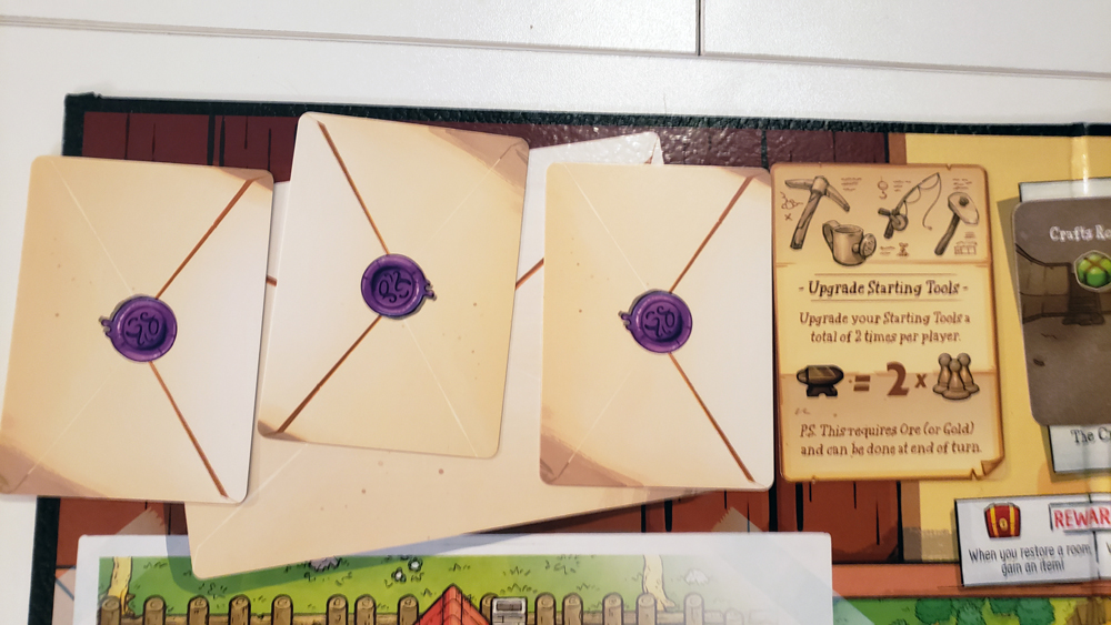 I will admit, this is a game that takes some time to set up, especially the first time you play because there are a lot of Tokens and Tiles to punch out and organize. That being said, the Rulebook does do a really nice job of streamlining the setup process. Players should also note that the Rulebook contains suggestions on adjusting the Difficulty Setting and Game Length. After setting things up, we choose to play the game on “Seedling” which is great for learning the game and sets a win condition of “Complete 4 of Grandpa’s Goals Only.”