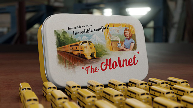Based on modern-day freight trains with tin art inspired by US National parks posters.