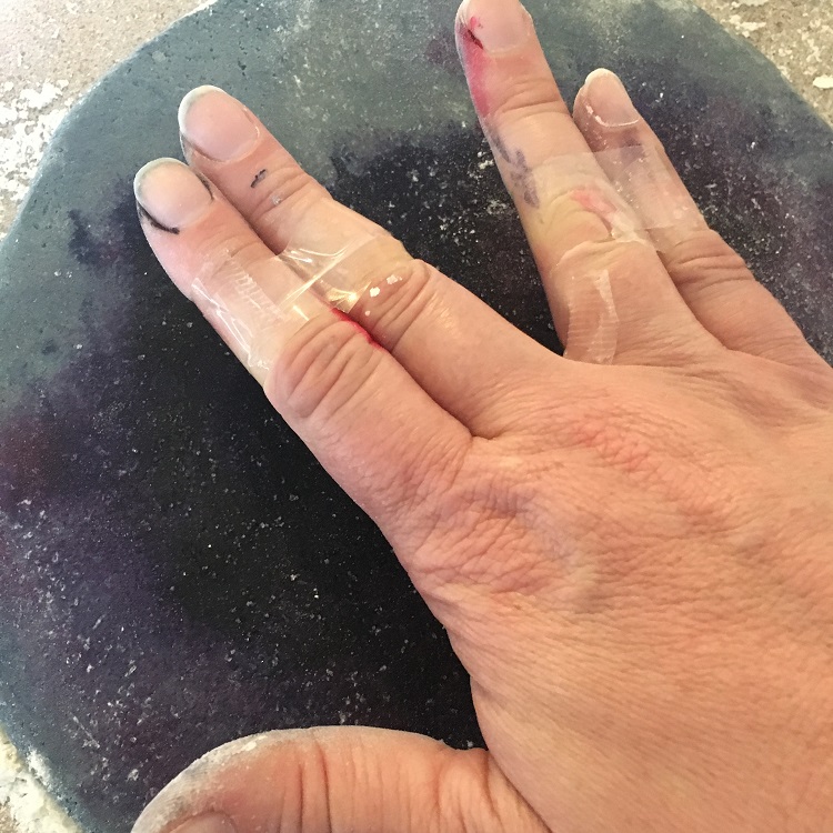 - Once you have your foundation, tape your first two fingers together and then your last two fingers together. Even if you can do the Vulcan hand gesture without help, taping them will help give a cleaner impression on the dough.