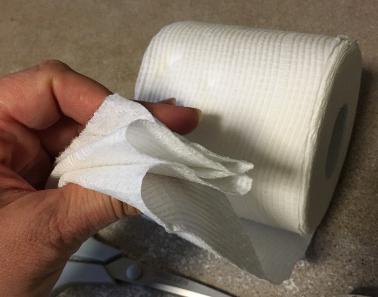 - Gently fold the stream of toilet paper backward and forward, creating a wave effect. I found it best to use the perforated line on each square as a reference point for one of the folds.