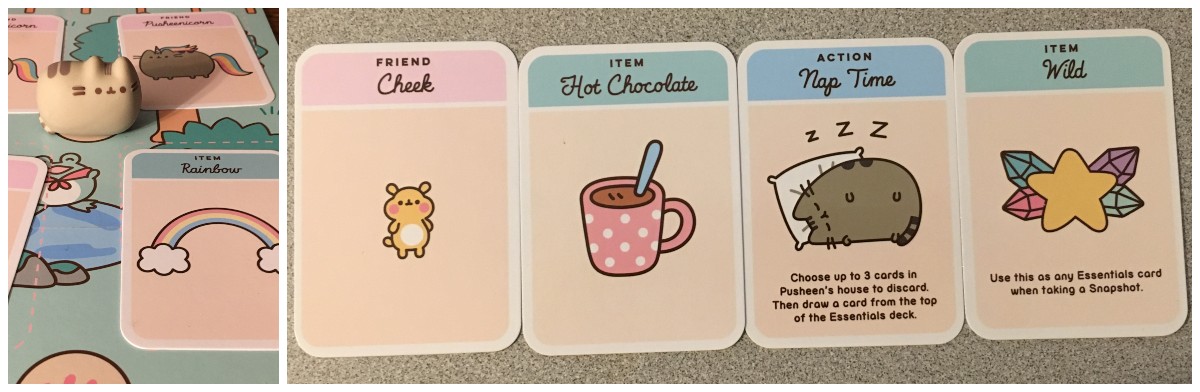 The components are all high quality. The Pusheen figure has a hard time staying in the box, as all of my children want to steal her, and I doubt it will be long before we are seeking out other characters of this same type. The Essentials cards are as ridiculously cute as you would expect, and I don’t think I have ever come across a more adorable wild card. They are of the standard you would expect of Ravensburger, both the cards and the board will hold up to much play, even by tiny, sticky fingers. Ours has already been wiped clean of Iced Tea and Goldfish crumbs. Everything fits precisely into its well designed and sturdy box, and the footprint makes it so that this can be stored absolutely anywhere you keep your games.