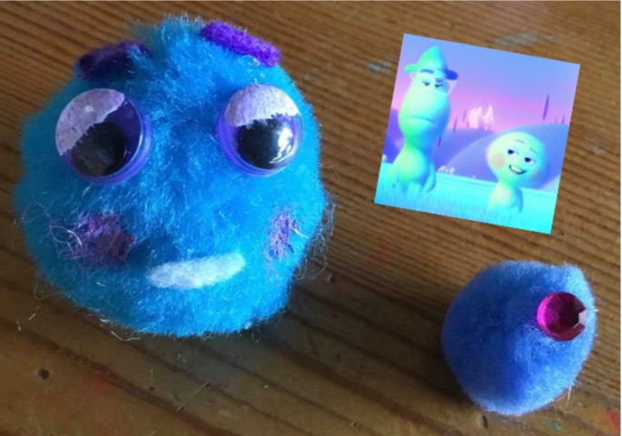 For the “souls” themselves, Docter said the look comes partly from a material called “aerogel,” the lightest material on Earth. Since we don’t have that, we’ll use something much easier to find, pom poms and some googly eyes, to make a little soul.