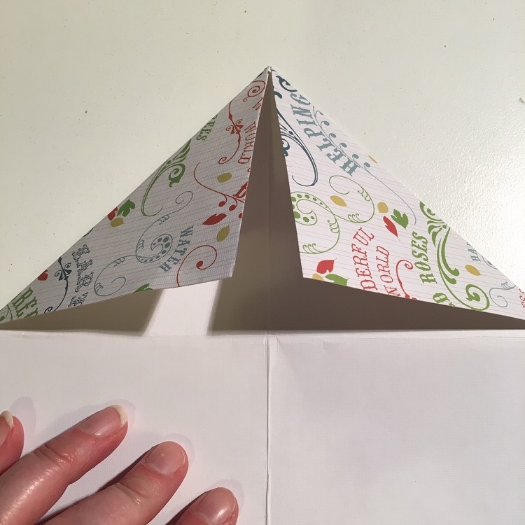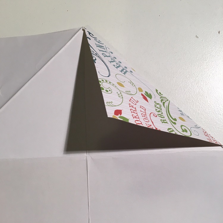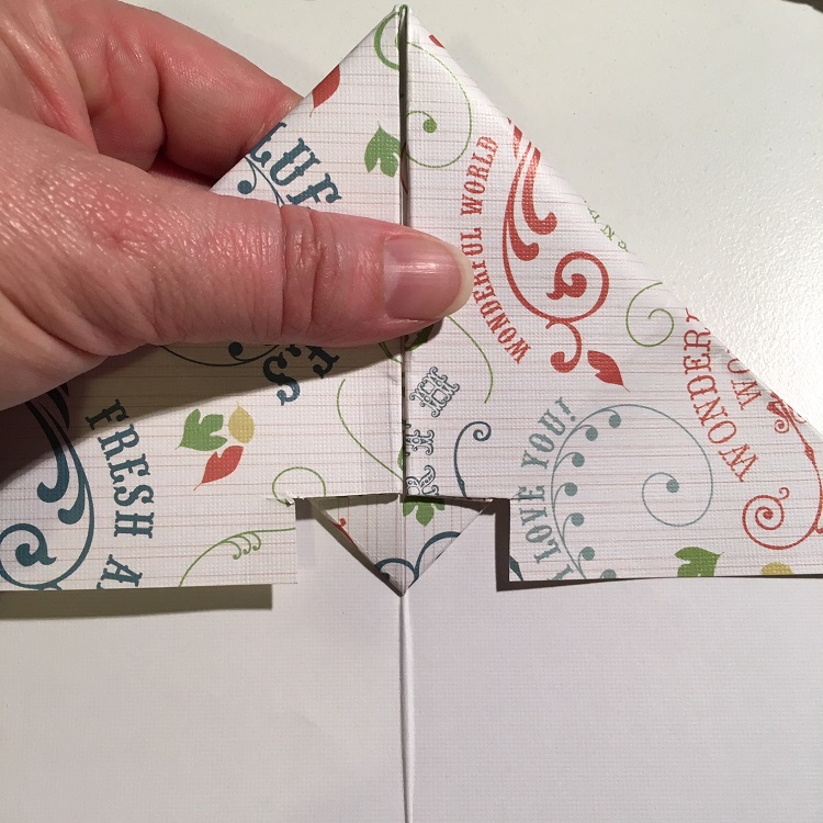 - Fold the missing corners down to the middle, a copy of the fold you did earlier. This time, you should see the tip of the triangle peaking out through the window you cut