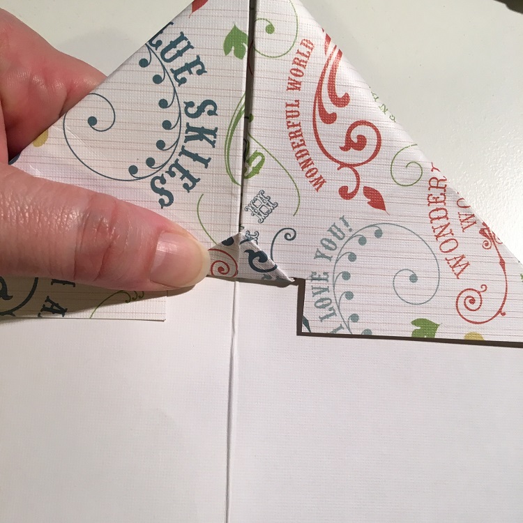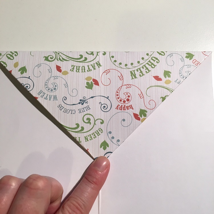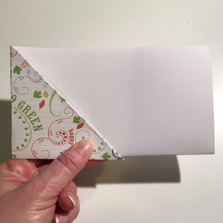 - Fold in half along the crease, so the diagonal line is visible up into the top corner.