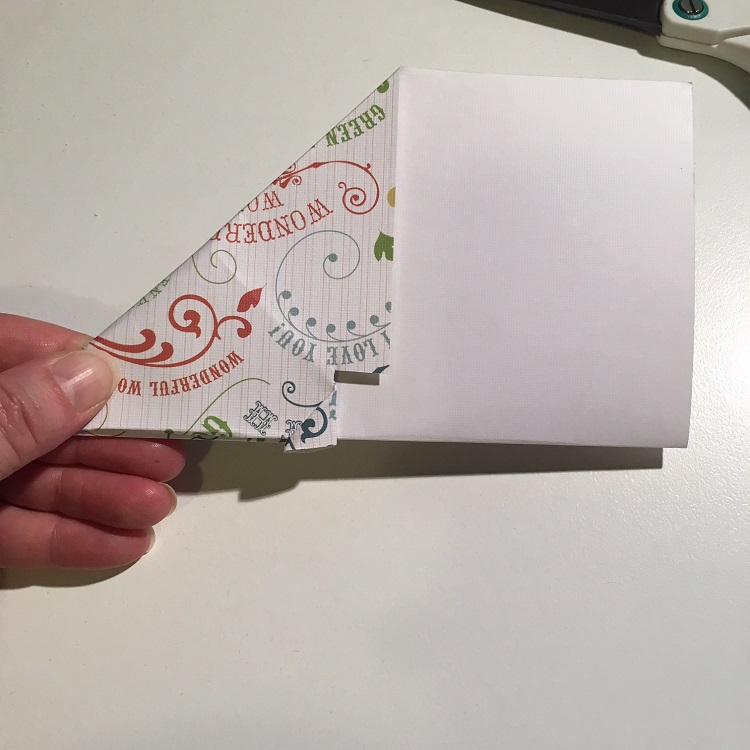 - Now cut or tear a small square out of the corner where the diagonal line meets.