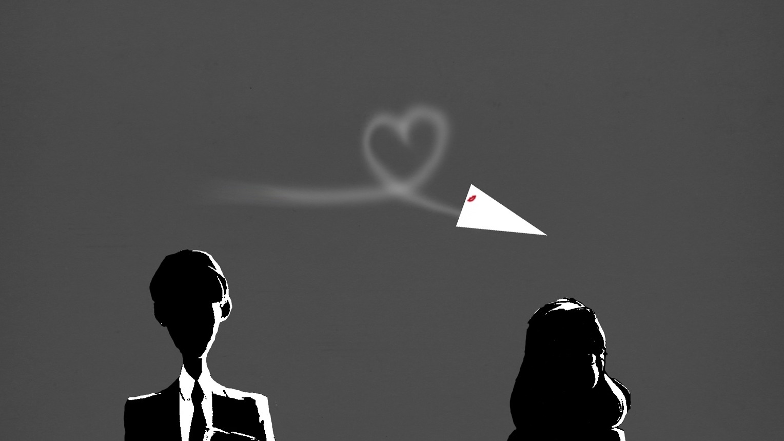 This film is short, sweet, and evocative. It is only 6-minutes long and presented in a black-and-white blend of traditional and computer animation (with a signature red highlight here and there). It is the story of a man who chances a brief meeting with a woman at a train station. Before he has the chance to act, she has already gone on the next train. The man is saddened for this missed opportunity… until he chances another sighting in the building across the street! But how can he gain her attention? The only thing he has is a stack of paper on his desk…