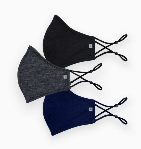 The Ibex mask has very stretchy earloops that are adjustable, it breathes well and wicks moisture, and it doesn’t fog up my glasses as much as most masks do (though they still fog up a very little). The mask has three layers, including an anti-bacterial and water repellent middle layer. After wearing, the mask washed up really well.
