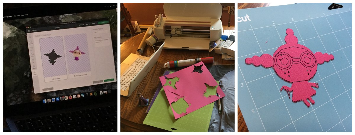 Starting simple, we explored the software, finding and cutting a variety of images. A lot of the images my family wants to find are for home use only, as we are ever mindful of licensing restrictions. Of course we started with some cartoon characters my kids wanted, but then I could look up things for which I can find very little paraphernalia. I am always in search of Marx Brothers goodies for my dad, and now with a quick image search and a bit of tinkering I can make them. My beloved Moomins can be cut and incorporated into my home decor. The first Moomin I cut out blew my mind, as ideas and opportunities started to fire inside my brain.